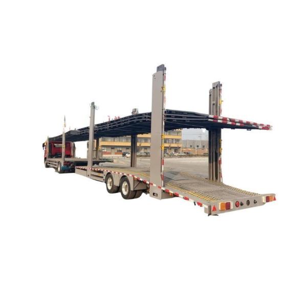 The trailer features an innovative dual-layer design, allowing vehicles to be loaded on two levels. The height of each layer is fully adjustable, providing greater flexibility and optimizing the space for loading commercial vehicles. This ensures a more efficient and organized arrangement, catering to various vehicle sizes and types.